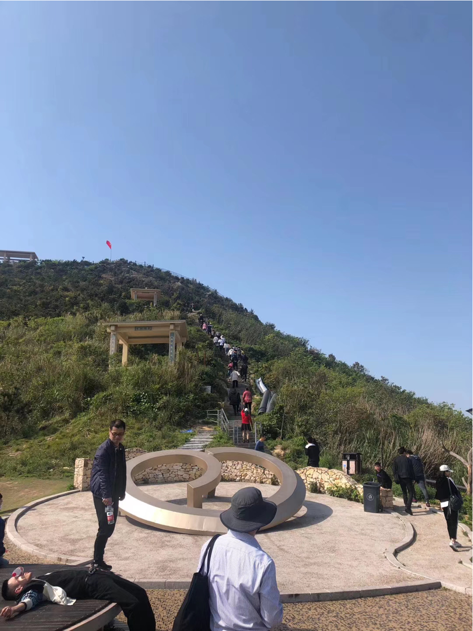 一個(gè)一個(gè)緊緊跟隨著,充滿著激情,一步一往上攀登,最終抵達(dá)綠道至高點(diǎn):網(wǎng)紅觀景臺(tái),并在這里留下勝利的笑影。海風(fēng)陣陣,吹干了路程中留下的汗水。站在最高點(diǎn)上放眼望去,著實(shí)有“一覽眾山小”的感覺(jué)。這讓大家感觸到,只有奮勇攀登,堅(jiān)持到底,才可一覽無(wú)限風(fēng)光!