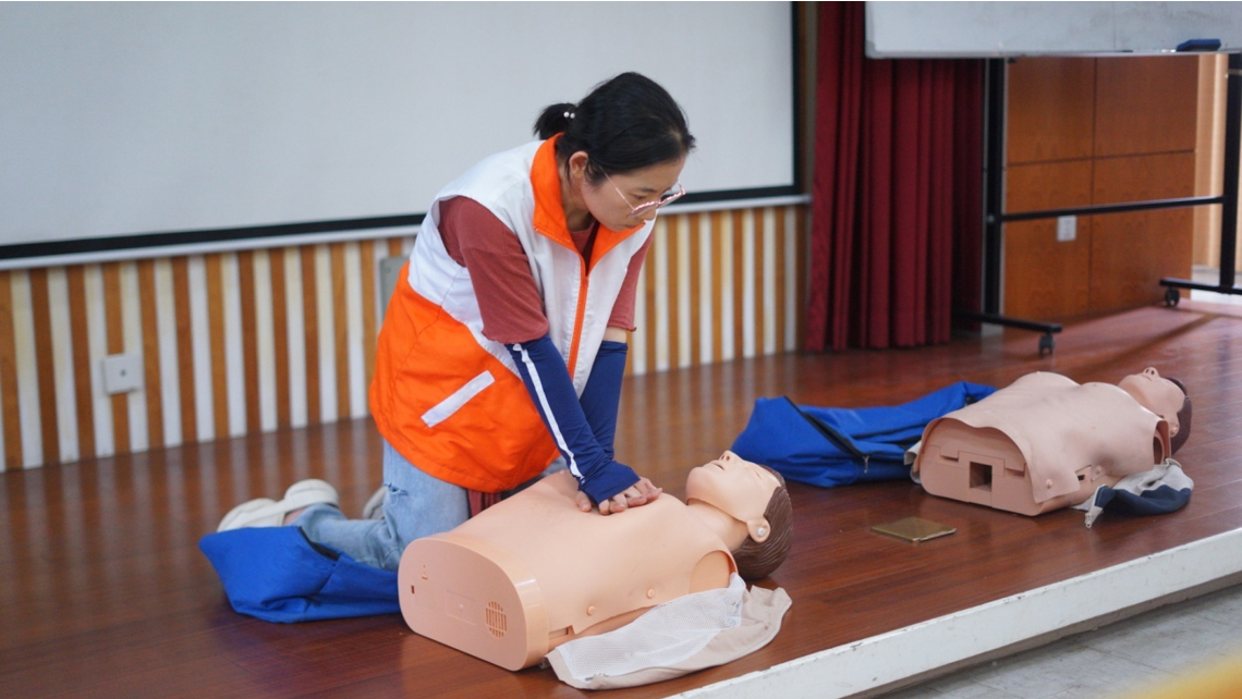 老師傳授了消創(chuàng)傷的止血與包扎方法。包扎考驗(yàn)的是救護(hù)者的耐心與動手能力,不同的部位需要不同的包扎技巧。在整個包扎知識傳授和練習(xí)過程中,整個現(xiàn)場充滿了歡聲笑語。在輕松的環(huán)境下,黨員們學(xué)到了創(chuàng)傷止血與包扎的基本方法。老師講完包扎、骨折固定等實(shí)用的急救技術(shù)后,大家還向老師提出傳授排除異物梗阻的方法,老師耐心地講解示范成人和兒童異物梗阻的操作現(xiàn)場實(shí)操練習(xí);老師還準(zhǔn)備了仿真人模,大家在老師的指導(dǎo)下依次在仿真人模上演練心肺復(fù)蘇、氣道異物梗阻清理、人工呼吸等技術(shù)。在場的黨員們積極參與,老師也現(xiàn)場糾正了員工的一些錯誤做法。