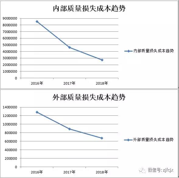 在2017年建立公司質(zhì)量成本統(tǒng)計(jì)核算系統(tǒng)以來(lái),質(zhì)量損失事件及不合格產(chǎn)品造成的質(zhì)量損失成本數(shù)據(jù)進(jìn)行了有效的收集、統(tǒng)計(jì)、分析、匯總,2018年,質(zhì)量損失成本管理的持續(xù)化,及對(duì)質(zhì)量損失成本分析數(shù)據(jù)的有效應(yīng)用,最終得到了豐厚的回報(bào),根據(jù)質(zhì)量損失成本的排列圖分析,而確定的涂裝生銹、涂裝油點(diǎn)的改進(jìn);針對(duì)鈑金工藝的滾圈、擴(kuò)口開裂的報(bào)廢損失的改進(jìn),最終使本公司的內(nèi)部質(zhì)量損失成本,由2016年的850萬(wàn)下降到2018年的273萬(wàn);外部質(zhì)量損失成本由2016年的128萬(wàn),下降到2018年的67萬(wàn)。