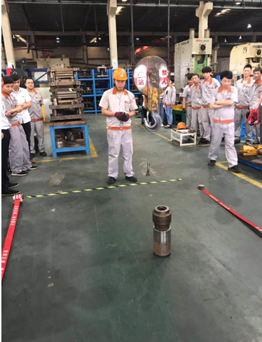 在比賽開始之前,工會主席呂曦紅、生產(chǎn)總監(jiān)蔡云峰、研發(fā)中心工程師李軍輝都到現(xiàn)場進(jìn)行了相應(yīng)的賽前道具準(zhǔn)備、場地劃線。同時對比賽的安全操作、比賽流程做了詳細(xì)的講解,以確保員工安全比賽、了解賽事規(guī)則。本項目之所以叫“趣味行車”比賽,就是需要三人接力、按照用時最短的原則,將一個圓柱物體用行車吊裝進(jìn)空心的圓柱體內(nèi)。這對于平時操作行車的熟練程度、技藝都有較高的要求。