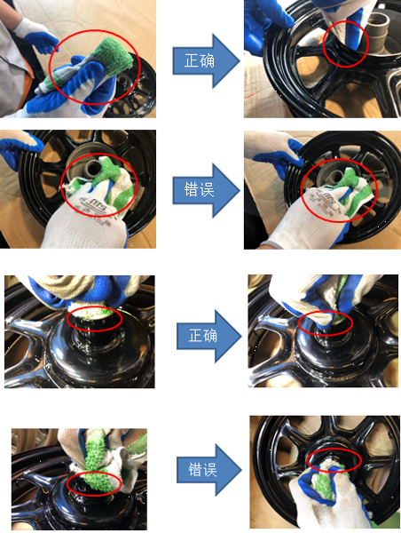 首先、朱新華主任針對(duì)8月份客戶(hù)反饋不良信息及不良圖片與在座培訓(xùn)人員展開(kāi)細(xì)節(jié)講解,他于會(huì)上提到:8月份特黑產(chǎn)品共計(jì)發(fā)貨6180只,其中不良的前輪有76只,后輪96,不良占比2.78%。上述的這些不良,都是由于我司員工在蘸取藥劑進(jìn)行擦拭過(guò)程中,沒(méi)有嚴(yán)格按照作業(yè)標(biāo)準(zhǔn)及其注意點(diǎn)而產(chǎn)生的。這些不良又都是需要經(jīng)過(guò)一段時(shí)間后才能顯現(xiàn),所以,過(guò)程中的標(biāo)準(zhǔn)作業(yè)對(duì)于問(wèn)題的杜絕顯得尤為重要。