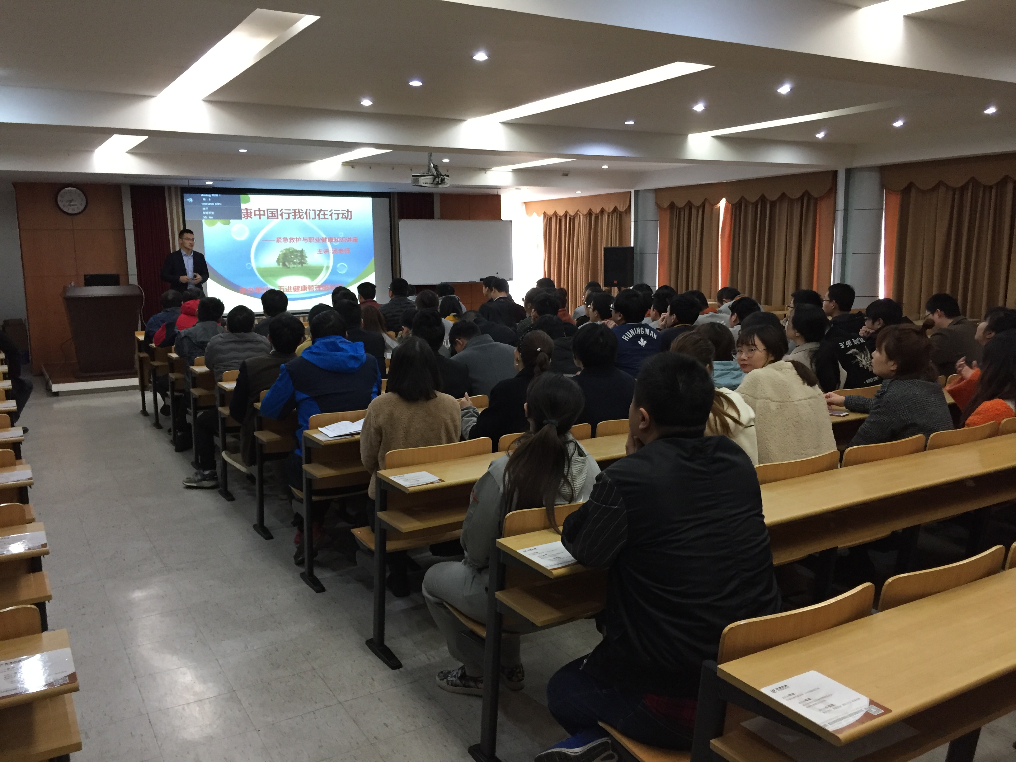 隨著生活水平越來越好,但人們的身體亞健康狀態(tài)也越來越多,只有健康的身體才能把工作做得更好。湯老師向?qū)W員們介紹我國10大致命疾?。ㄆ渲行呐K病位居第一),環(huán)境污染給人體帶來的危害(霧霾);常見慢性?。ㄈ绺哐獕骸⑻悄虿。┑鹊姆乐巍2⑾虼蠹彝扑]了健康的五大基石:合理膳食、適量運(yùn)動(dòng)、戒煙限酒、心理平衡、定期體檢的意義和方法。引導(dǎo)員工自覺養(yǎng)成良好的生活習(xí)慣,健康工作和生活。